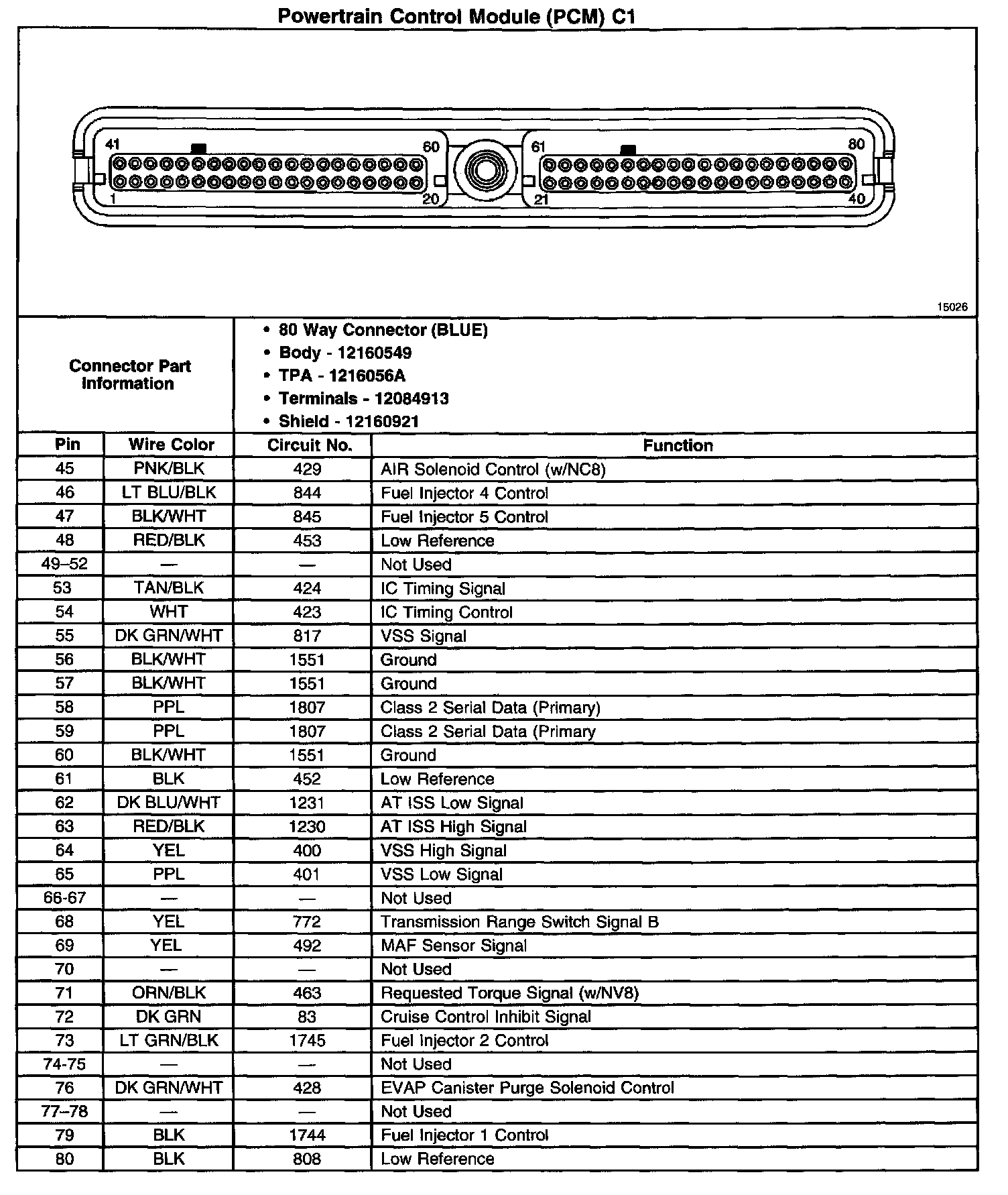 Powertrain Control Module (PCM) C1 (Part 2 Of 2):