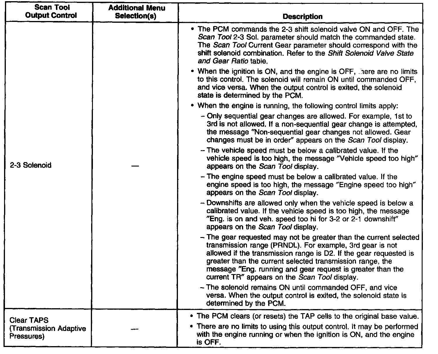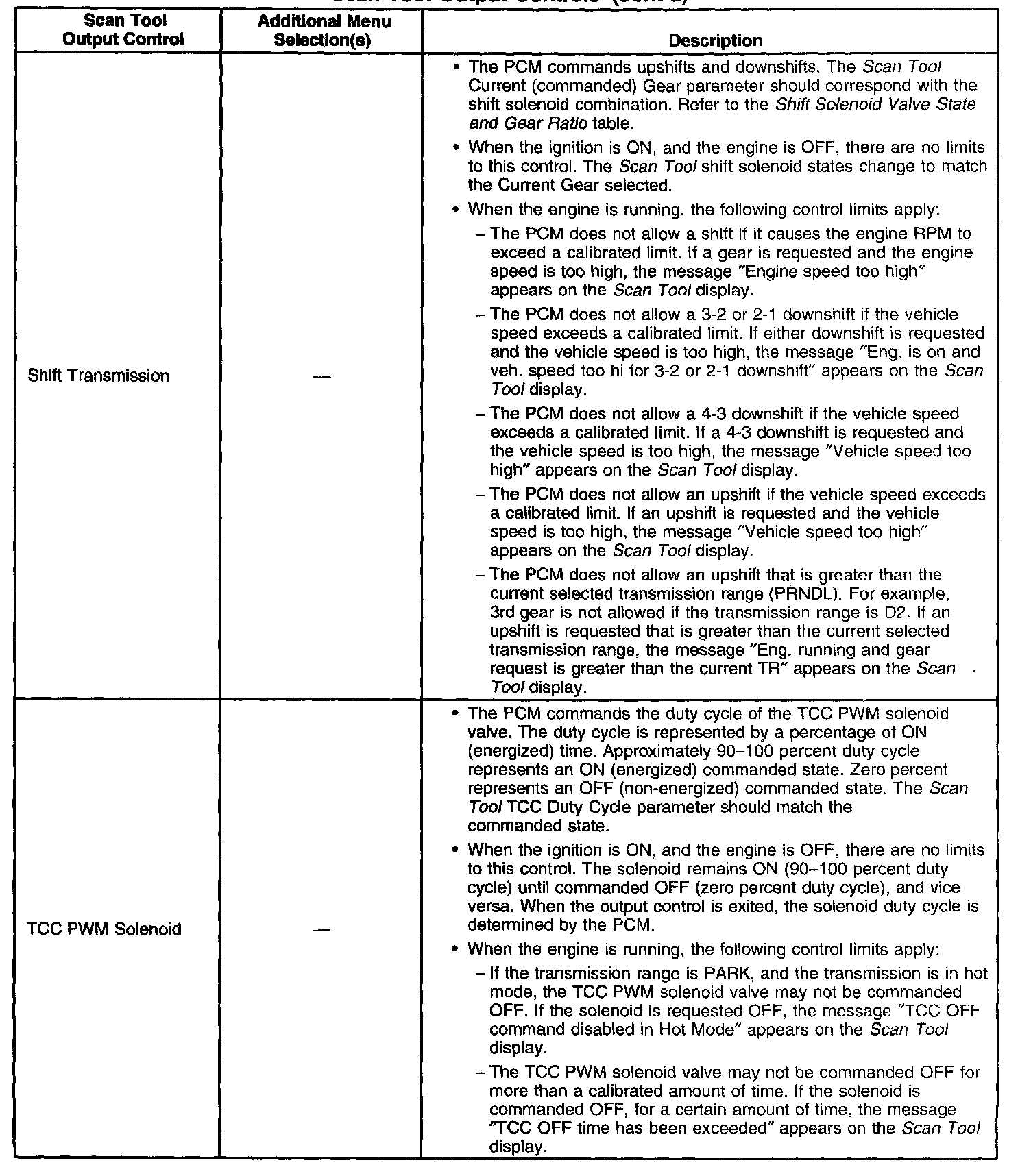 Scan Tool Output Controls