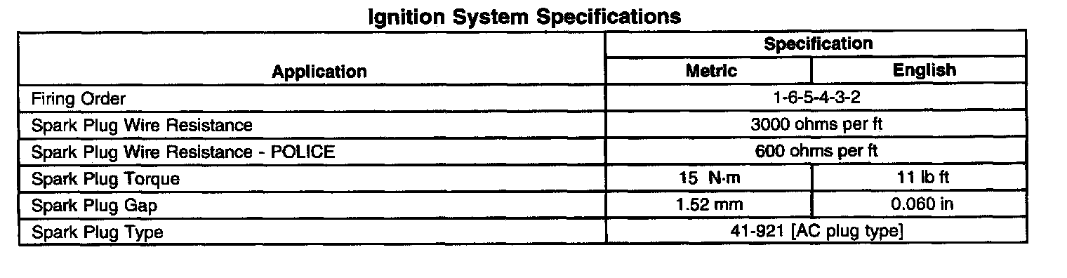 Ignition System Specifications: