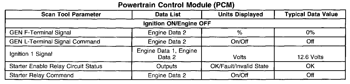 Scan Tool Data List - Powertrain Control Module (PCM)