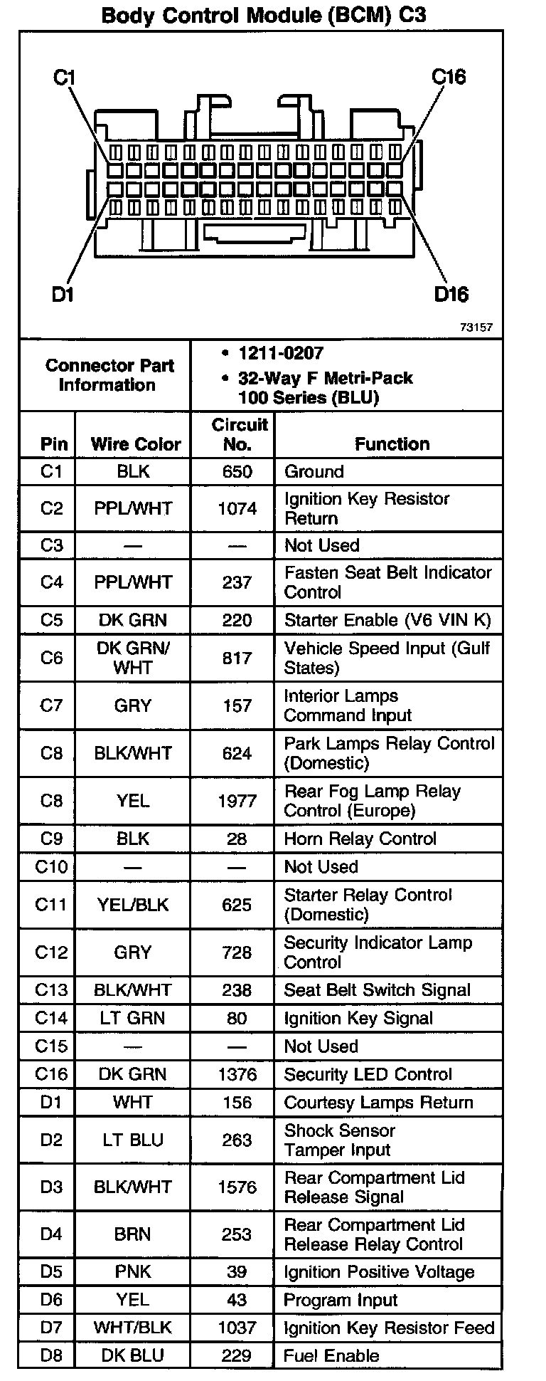 Body Control Module (BCM) C3 (Part 2 Of 2):