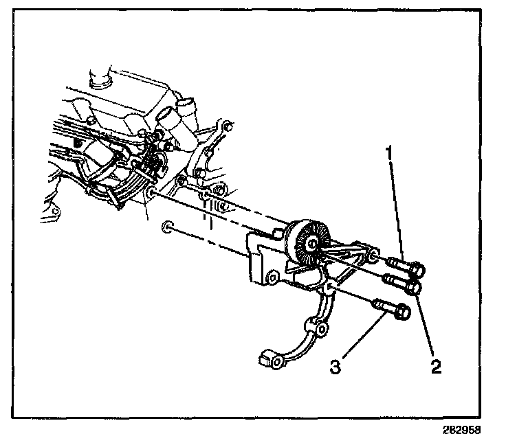 8. Remove the A/C compressor bracket bolts from the bracket (2, 3).