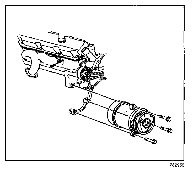 9. Remove the A/C compressor bolts.
