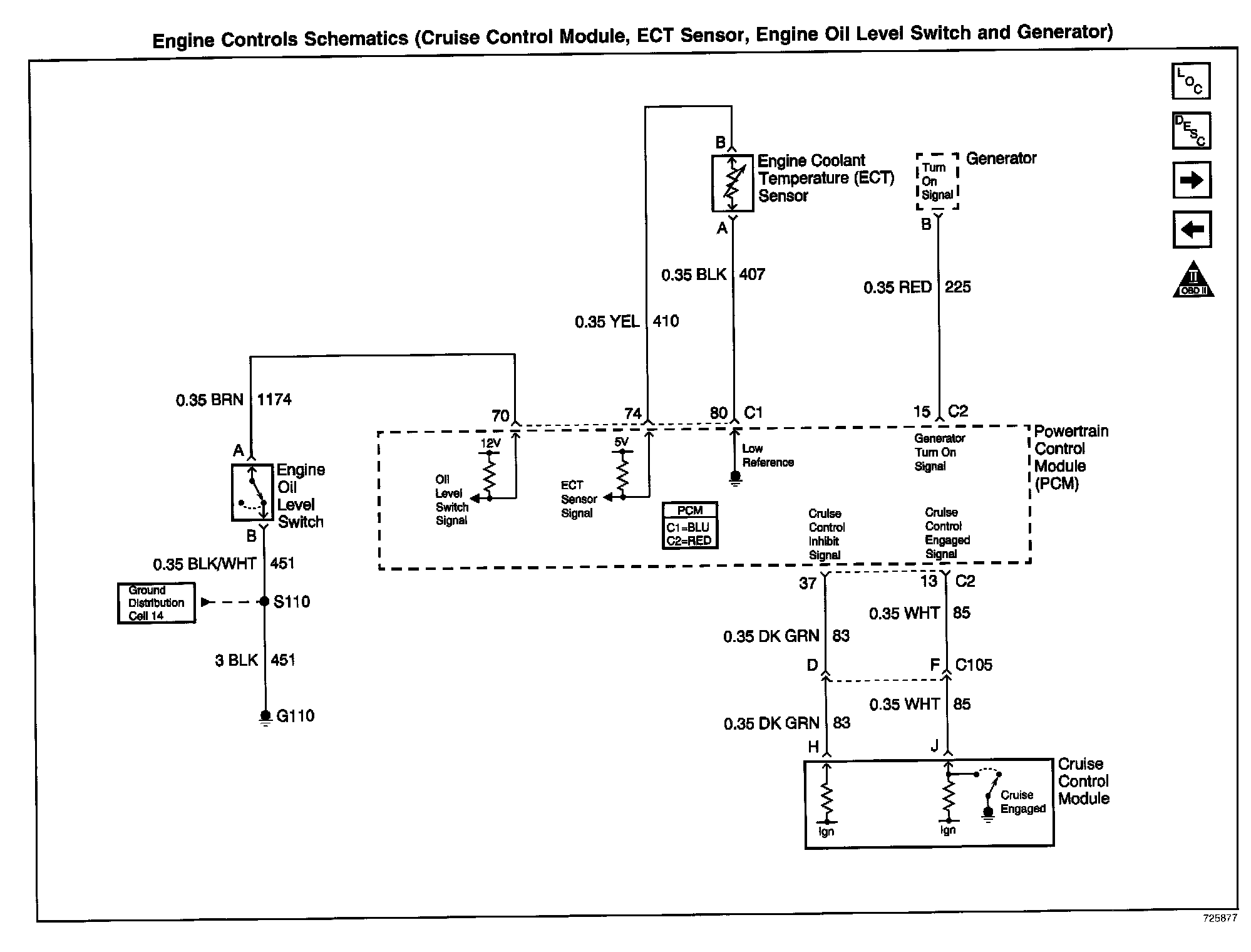 Engine Controls Schematics: Cruise Control Module, ECT Sensor, Engine Oil Level Switch And Generator: