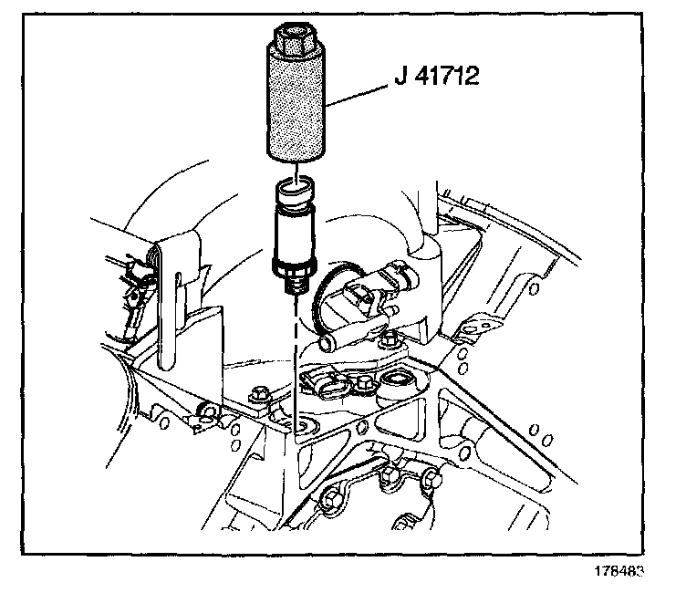 2. Use J 41712 to install the oil pressure sensor to the engine block.