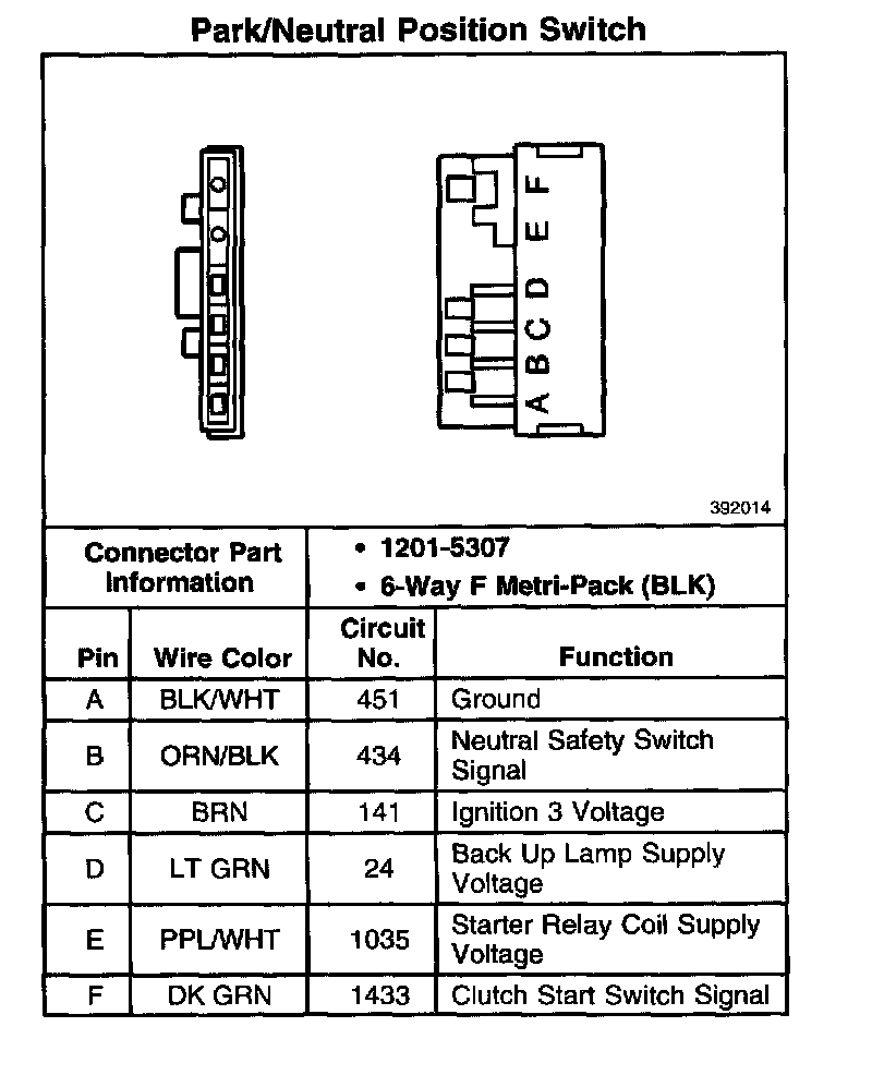 Transmission Position Sensor/Switch: Diagrams