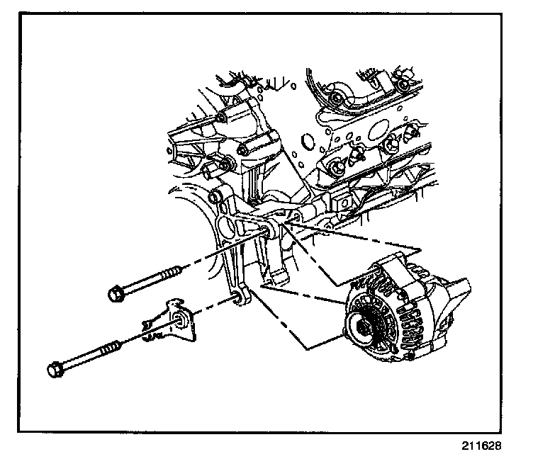 5. Install the generator rear mounting bolt (1) (at generator).