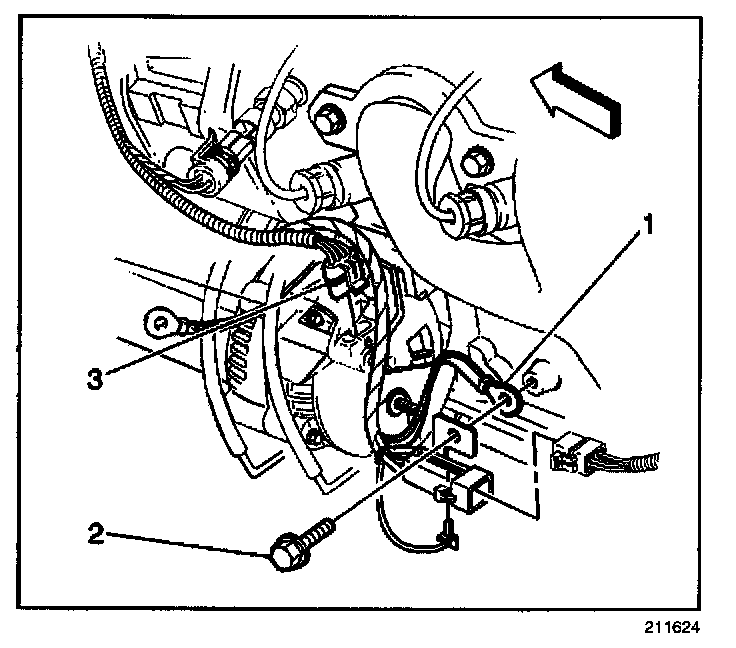 8. Disconnect the generator electrical connector (3).