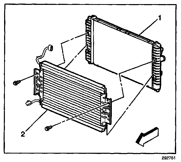5. Remove the condenser (2) from the radiator (1).