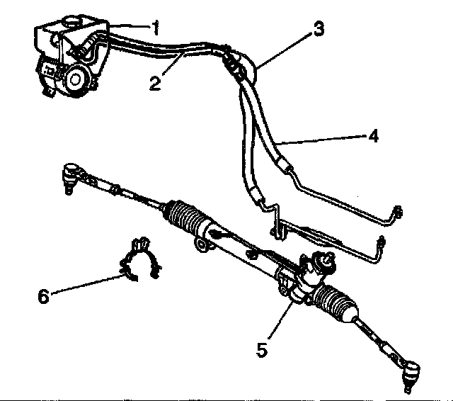5. Remove the power steering return hose (3) from the retainer (6).