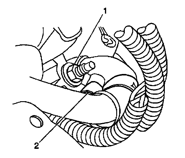 5. Install the power steering hose retaining bracket (2) and the retaining nut (1).