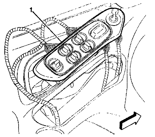4. Release the power window switch retainers and remove the switch from the bezel (1).
