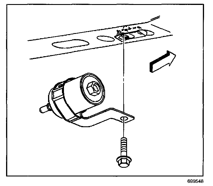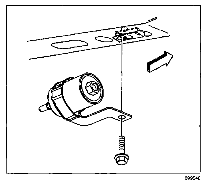 6. Install the fuel filter mounting bracket retaining bolt.