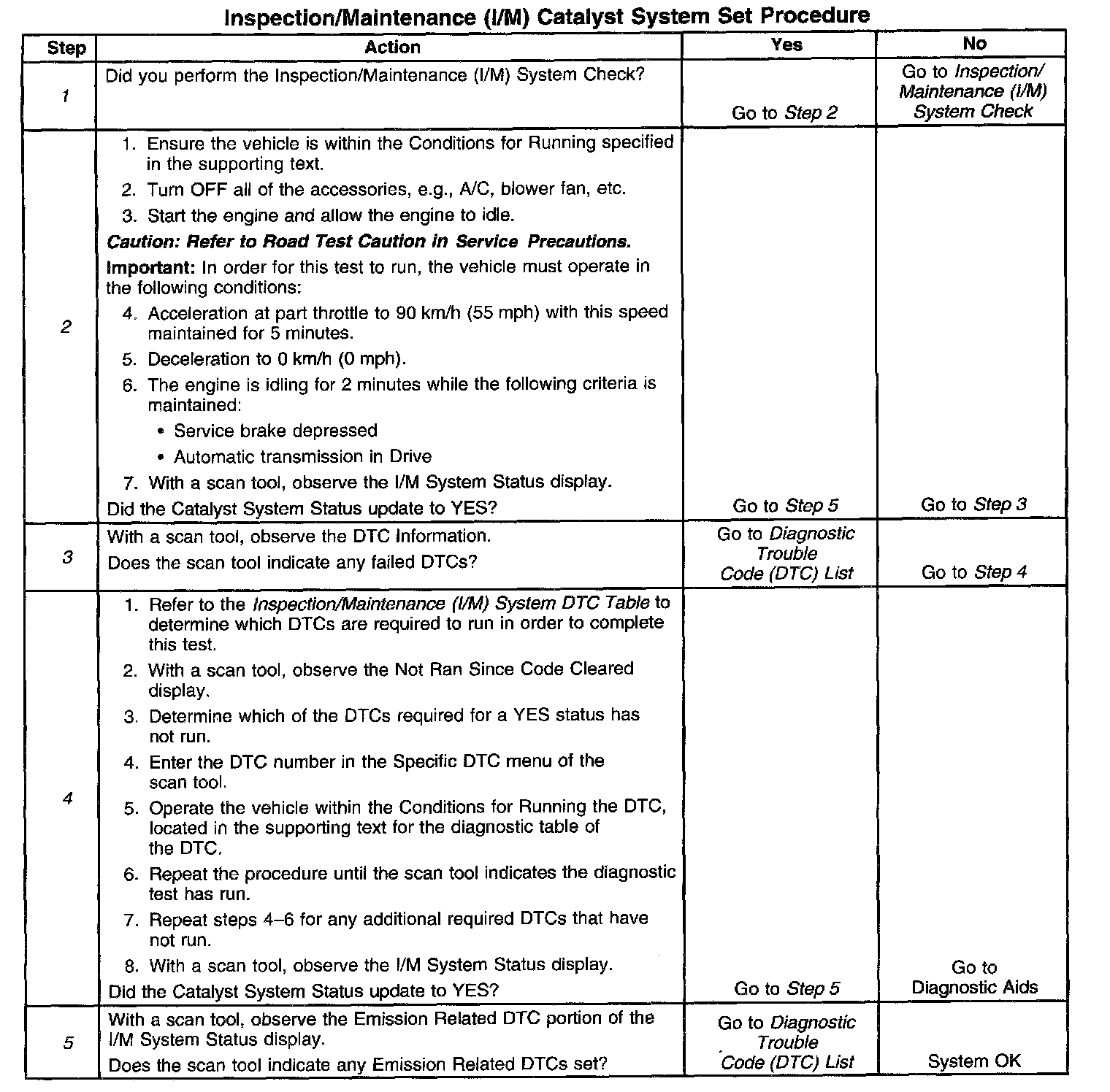 I/M Catalyst System Set Procedure