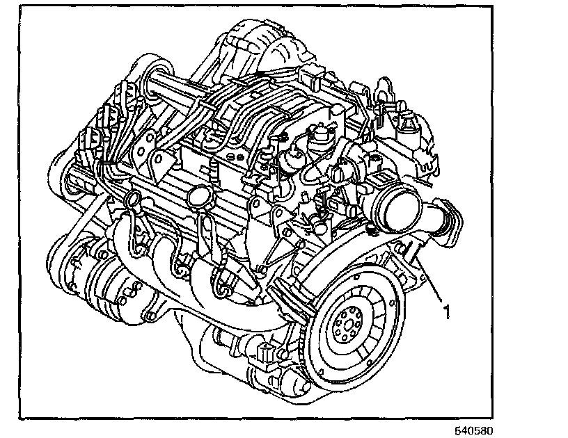 The primary location of the VIN derivative for the 3800 L36 and L67 engine is above the starter motor on the engine block (1).