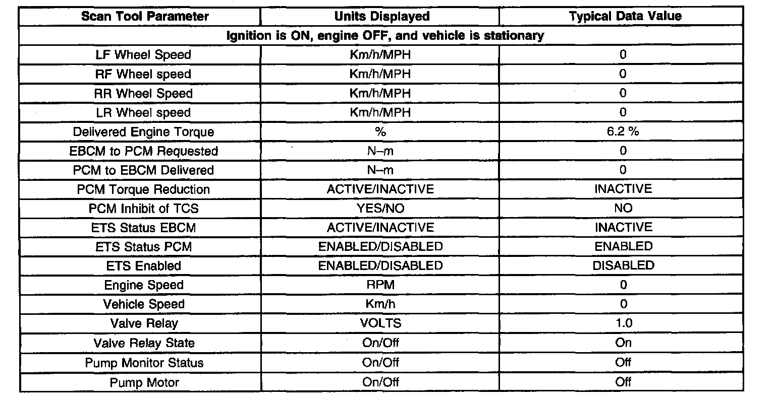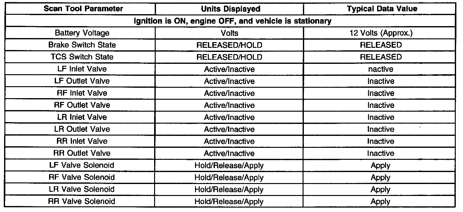 The Scan Tool Data List contains all of the antilock brake system related parameters under the Data Display Function that are available on the scan tool. The parameters in the list are arranged in alphabetical order.