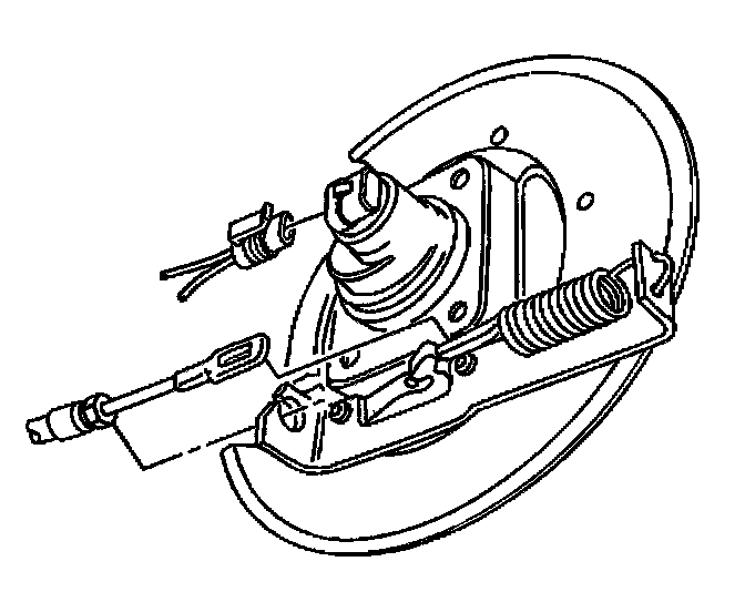 7. Disconnect the park brake cable return spring from the park brake actuator and bracket at the rear wheel.
