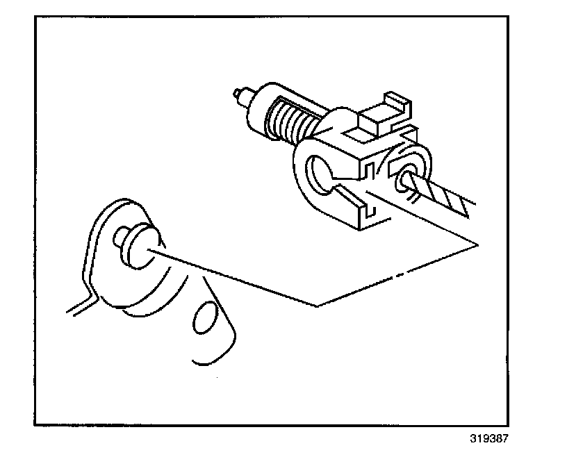2. Install the cruise control cable to the throttle lever and the accelerator control cable bracket.