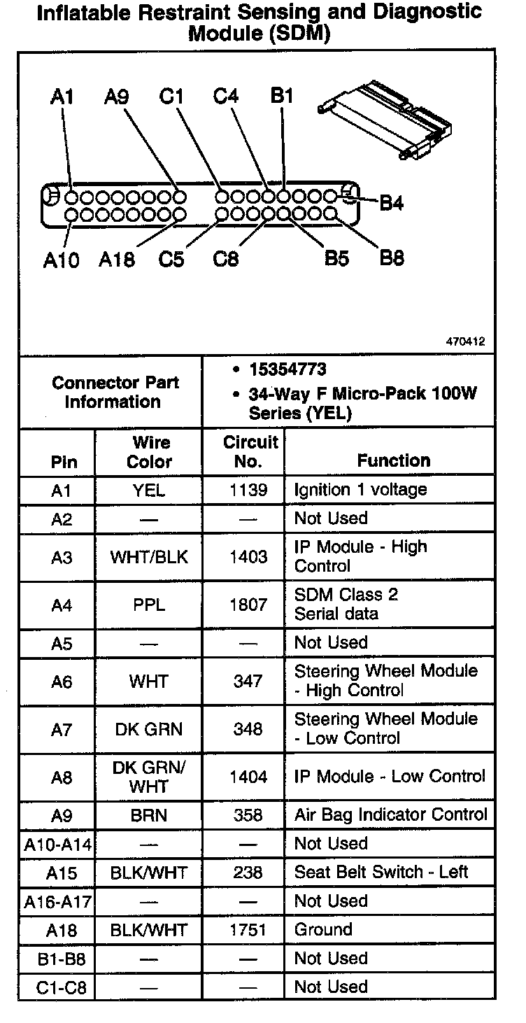 Inflatable Restraint Sensing And Diagnostic Module (SDM):