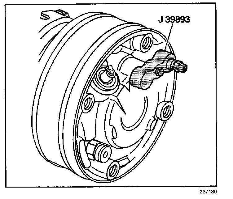 1. With the sealing washers in place, install the J 39893 on the rear head of the compressor.