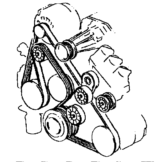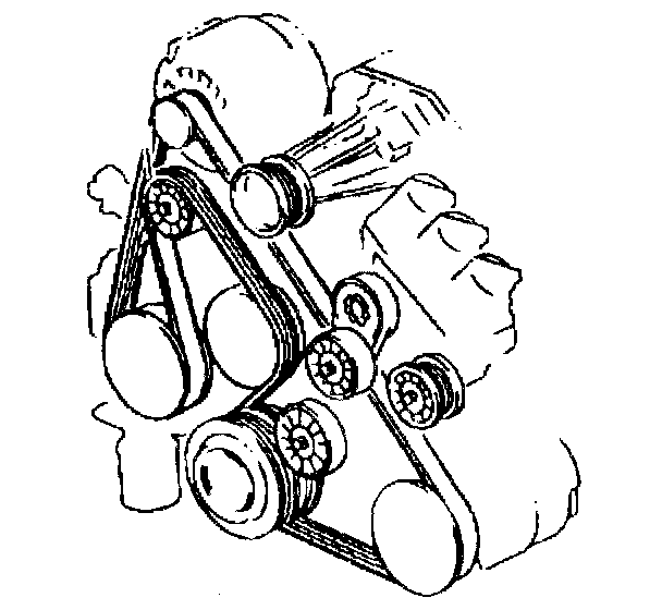 The supercharged 3800 engine utilizes two drive belts. The outer drive belt drives the supercharger. The inner drive belt drives the following components: