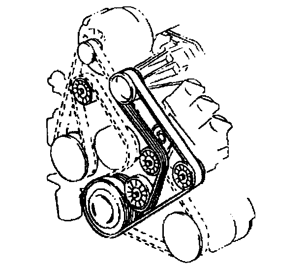 All driven accessories rigidly mount to the engine. Spring-loaded belt tensioners maintain the drive belt tension. Each drive belt has its own tensioner. A drive belt squeak, occurring when the engine starts or stops, is normal and has no effect on the durability of the drive belt. The drive belt tensioner can control the drive belt tension over a broad range of drive belt lengths, due to stretching. However, there are limits to the tensioner's compensation ability. Poor tension control and/or damage to the tensioner may occur after using the tensioner outside of its operating range. Replace the drive belt when this occurs.
