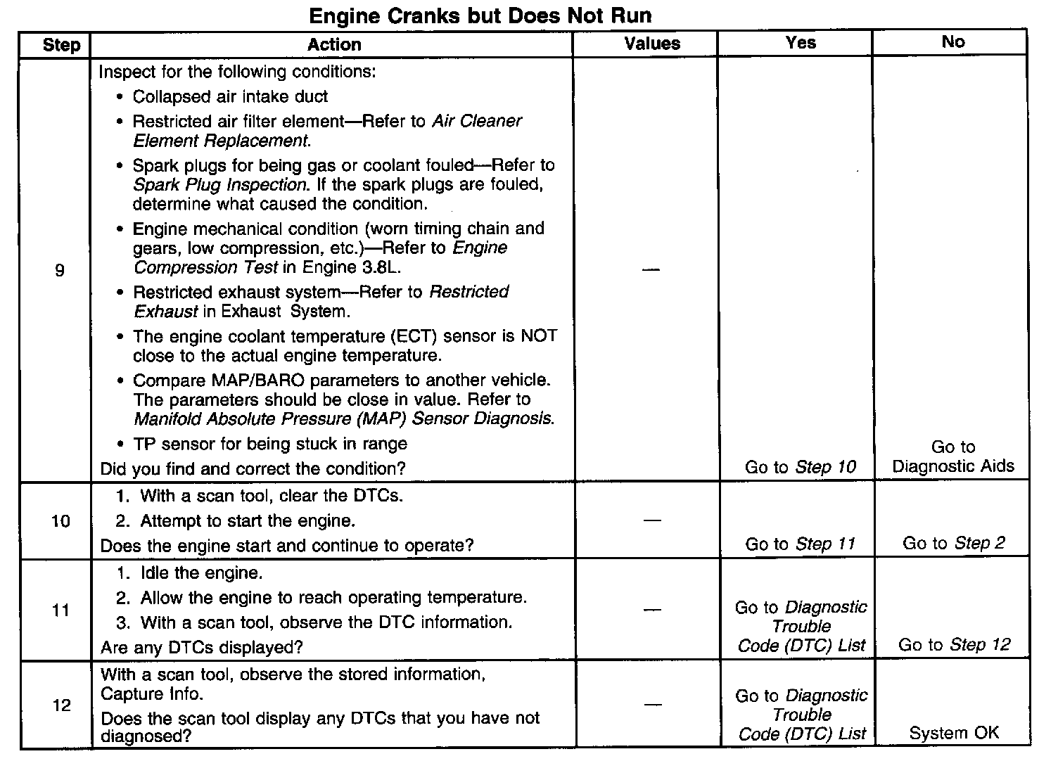 The following table will isolate the failed system and lead to the correct diagnostic procedure.