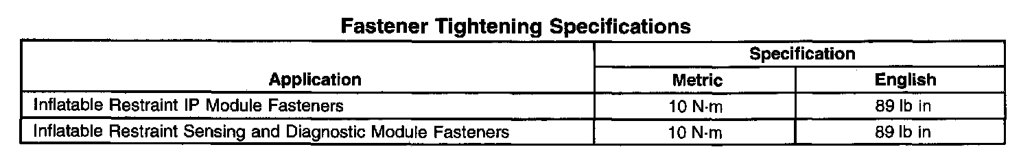 Fastener Tightening Specifications: