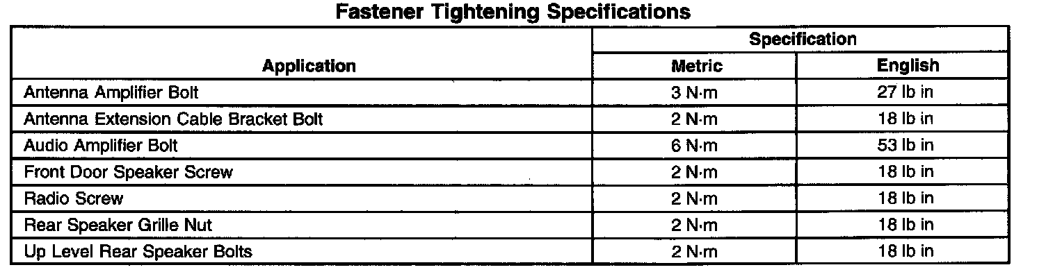 Fastener Tightening Specifications: