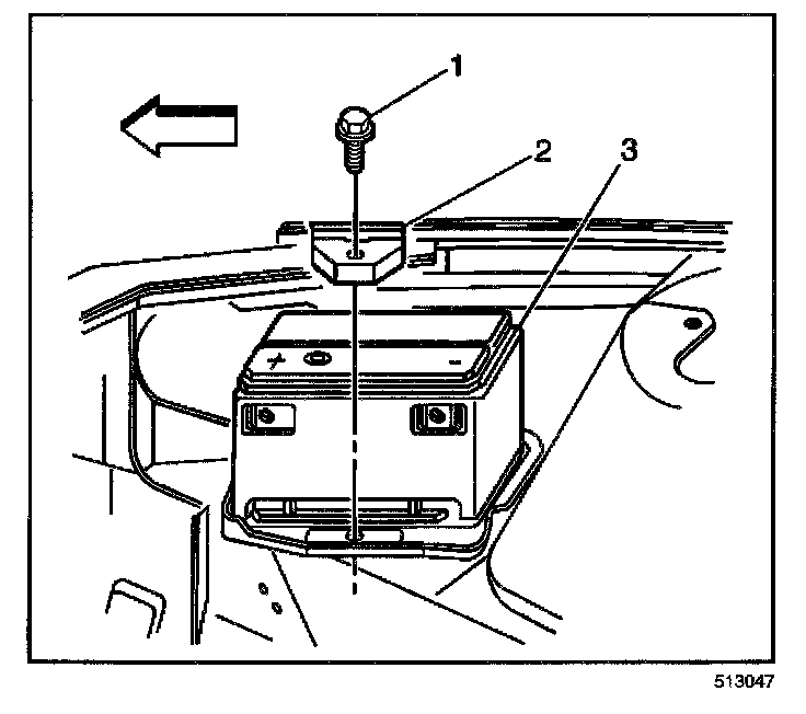 Tighten the battery hold down retainer bolt to 18 N.m (13 lb ft).