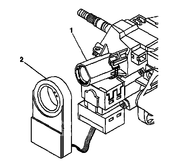 8. Remove the 2 tapping screws (2) from the ignition and key alarm switch assembly (1).