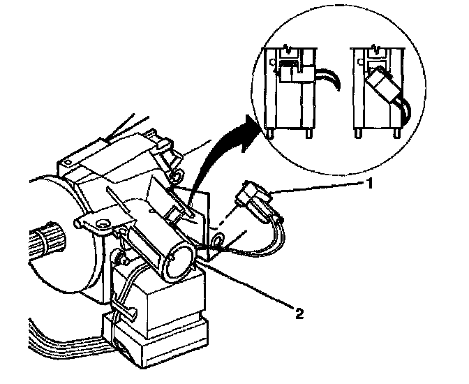 7. Remove the key alarm connector (1) from the electronic lock module assembly (2).