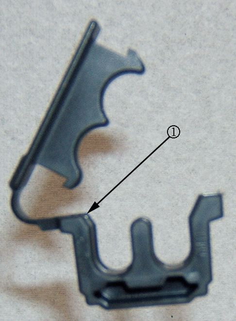 2. Remove the 1-3-5 spark plug plastic retaining channel (cover) clip/bracket (2) from the engine and discard it.