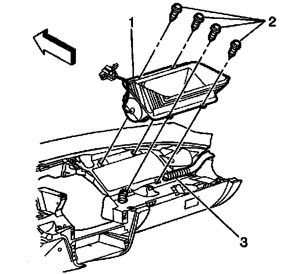 1. Install the inflatable restraint IP module (1) to the instrument panel.