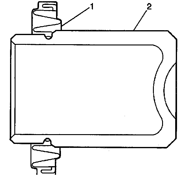 6. Install a C-clamp (2) over the top of the brake caliper and against the back of the outboard brake pad.