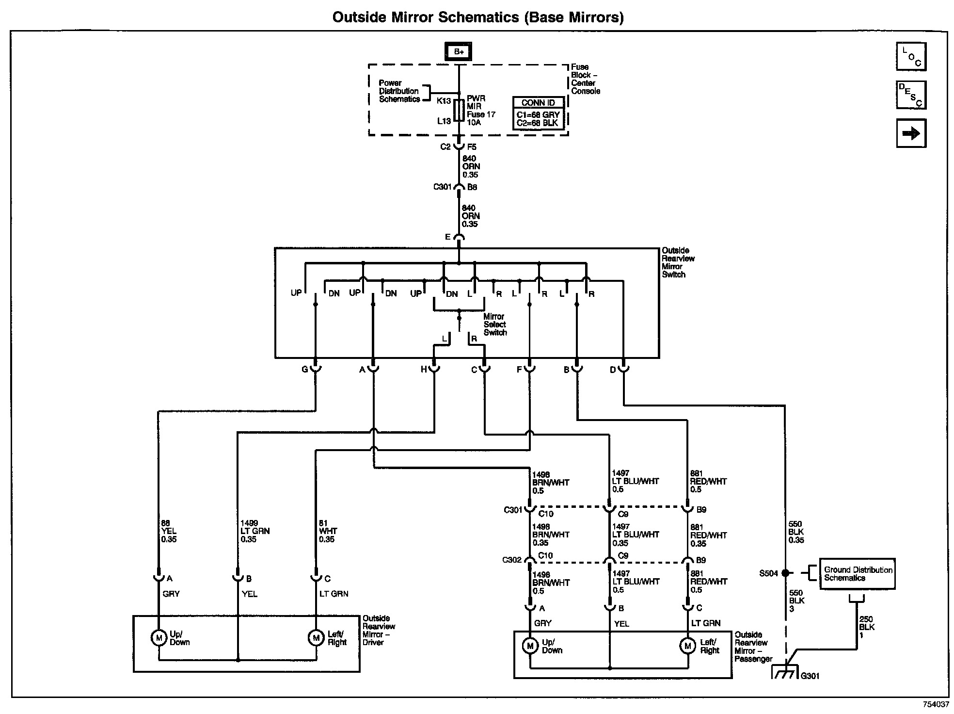 Outside Mirror Schematics: Base Mirrors: