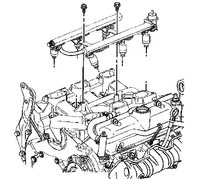 6. Remove the fuel feed and return pipe from the fuel injector rail.