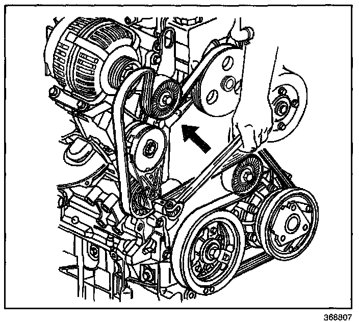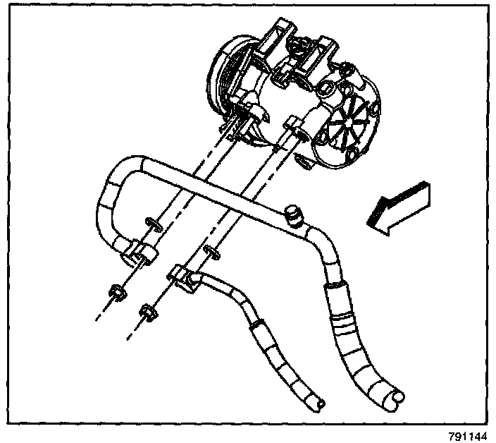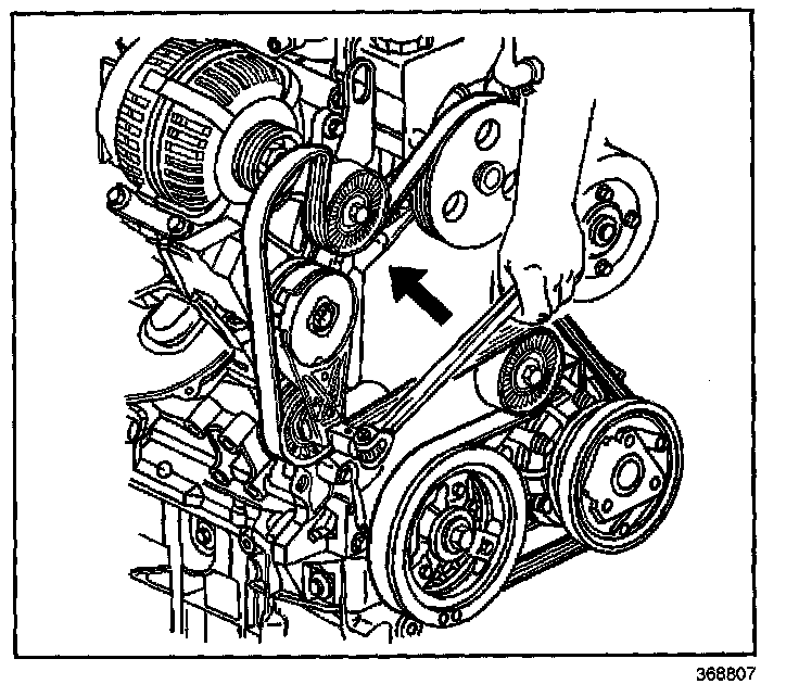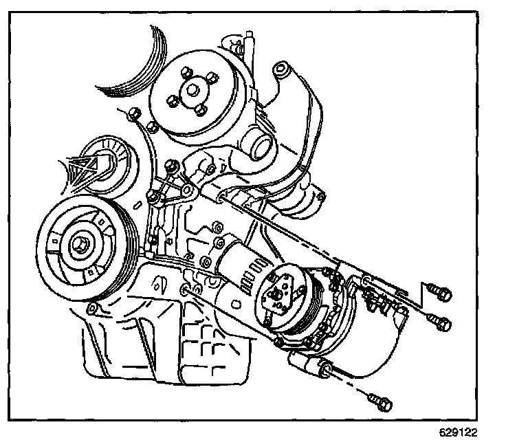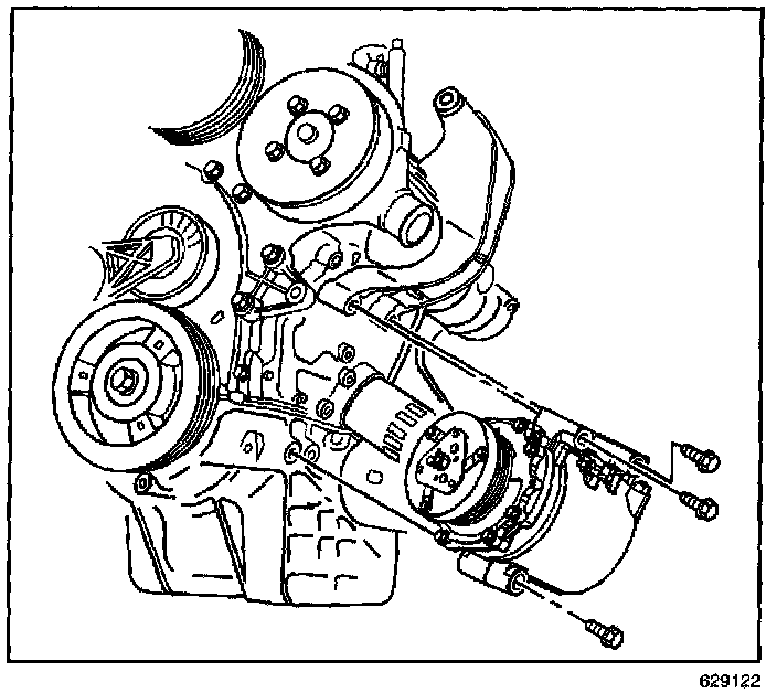 4. Release the drive belt tensioner. Remove the drive belt from the compressor pulley.