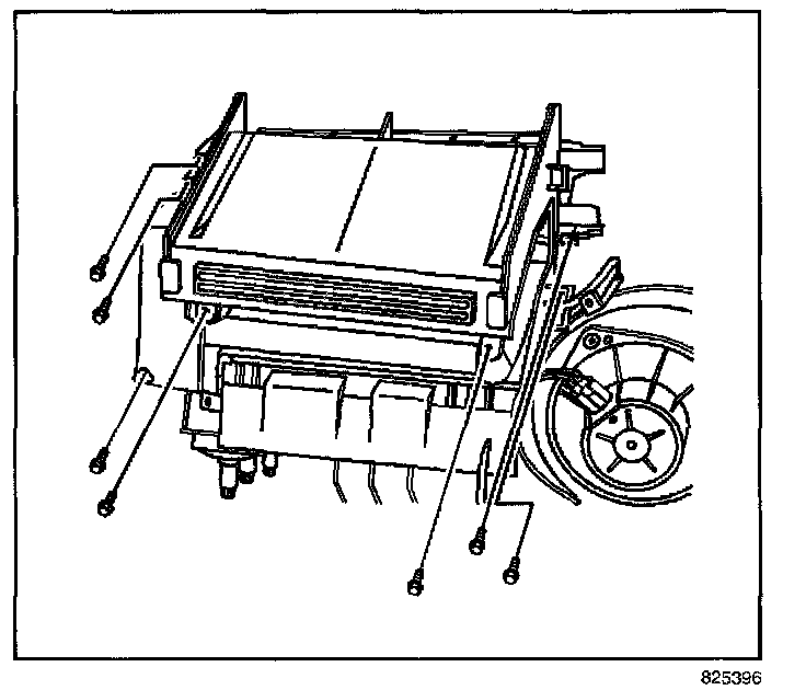 10. Remove the heater core cover screws.