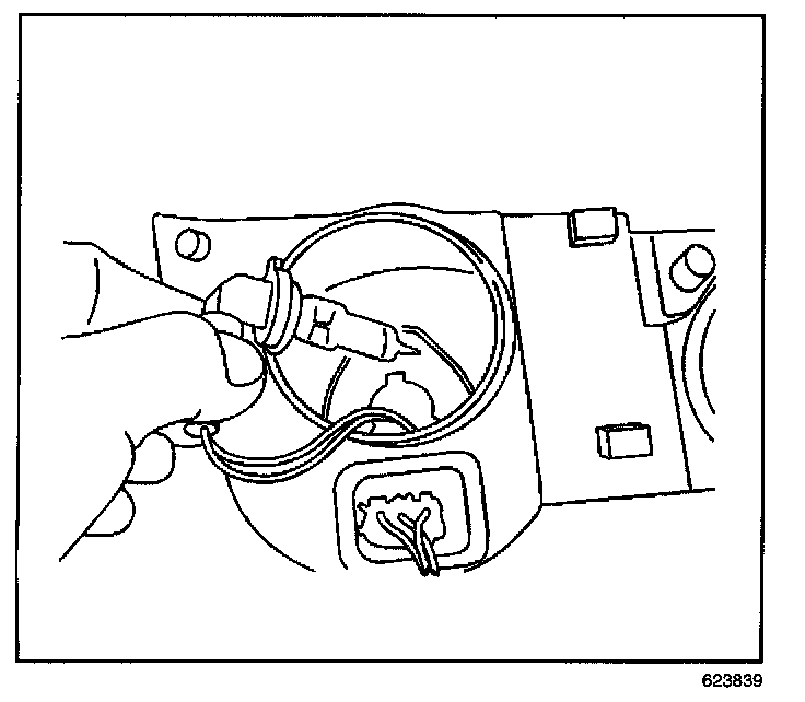 8. Remove the headlamp bulb from the socket, turning counterclockwise.