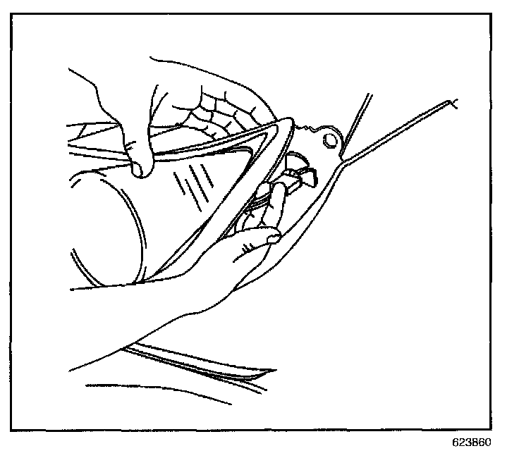 IMPORTANT: The headlamp electrical connector must be positioned into the upper fascia support panel for proper seating of the headlamp.