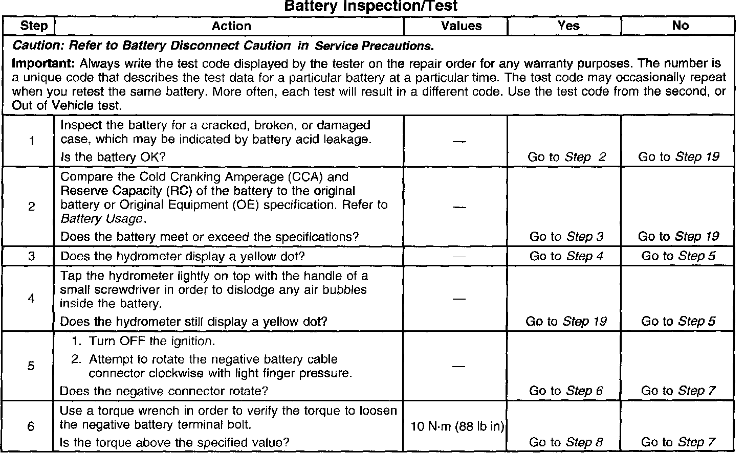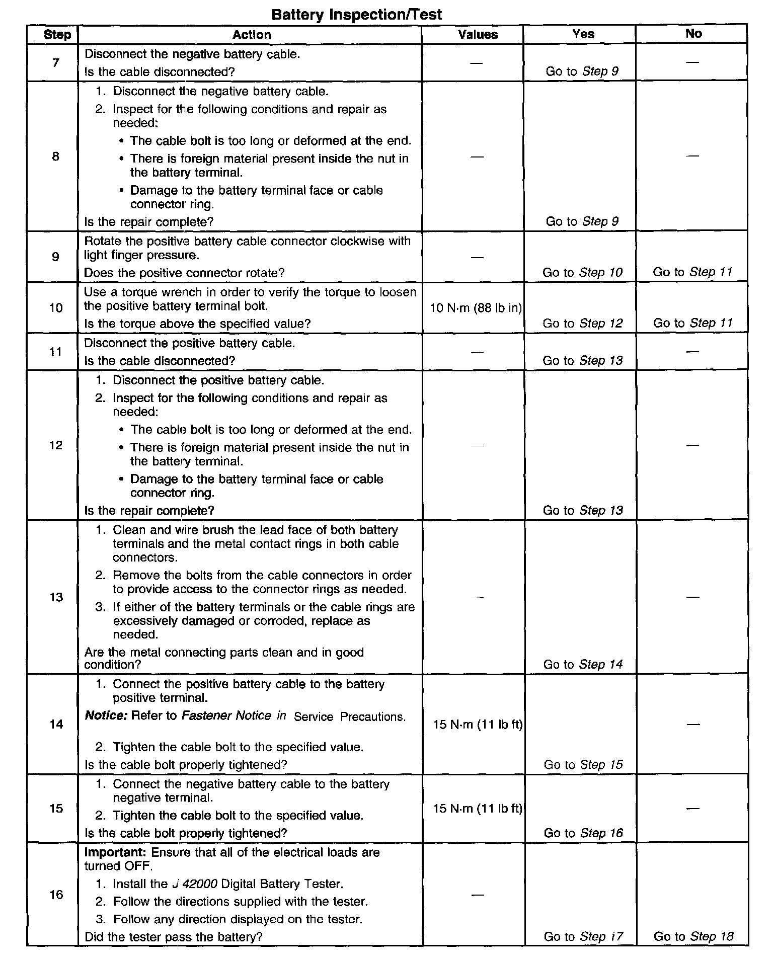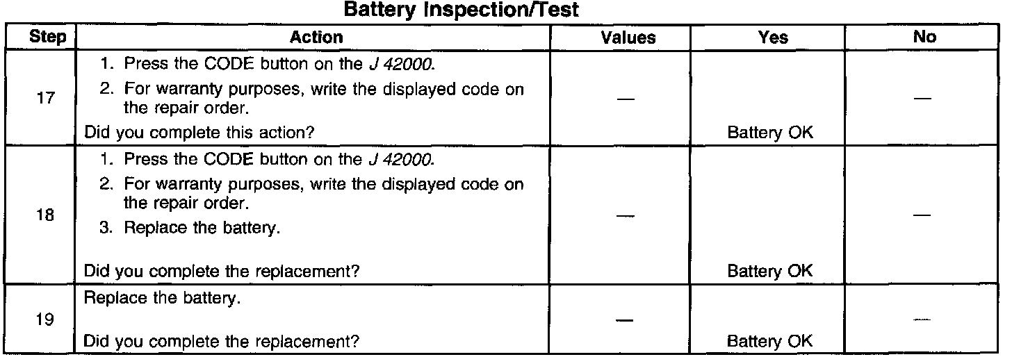 ^ If the tester displays a REPLACE BATTERY or BAD CELL-REPLACE result for a battery tested in the vehicle with the battery cables connected, perform the following steps:
