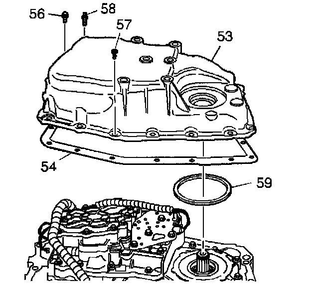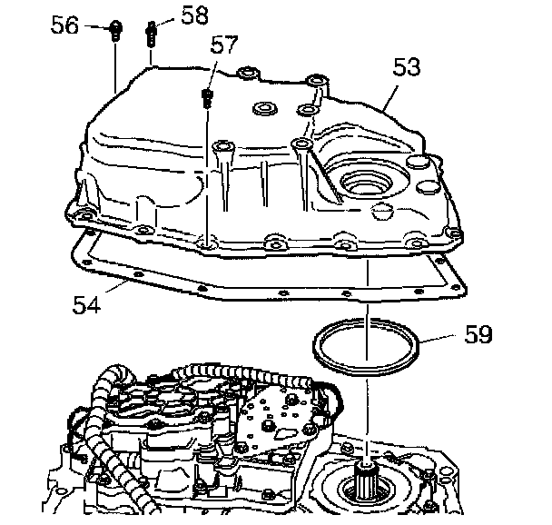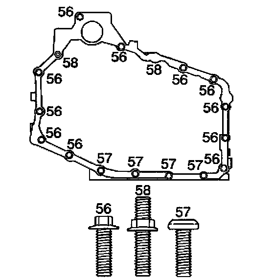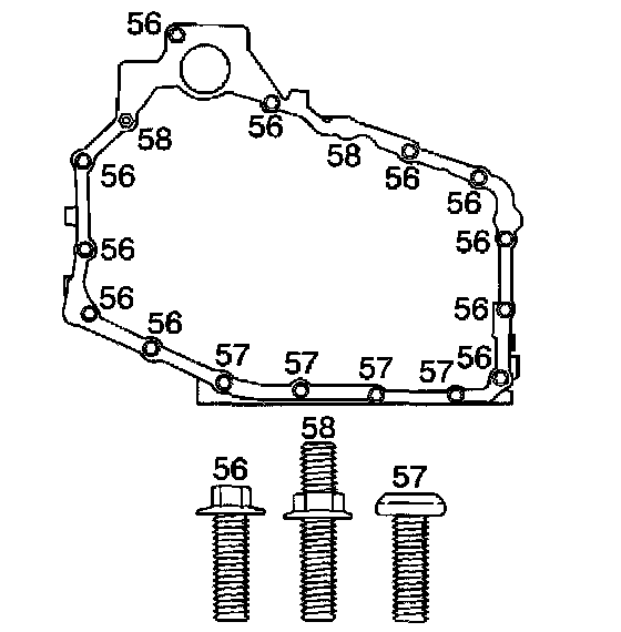 ^ Tighten the case side cover bolts (56-58) to 25 Nm (18 ft. lbs.).