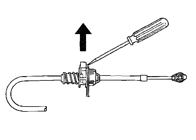 8. Pull the automatic transaxle range selector cable terminal toward the pin on the automatic transaxle range selector lever. The automatic transaxle range selector cable adjuster spring should compress as the terminal is moved toward the pin.