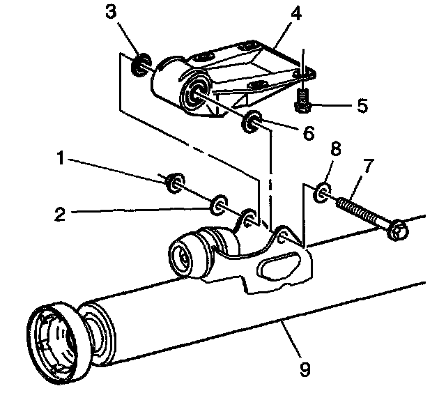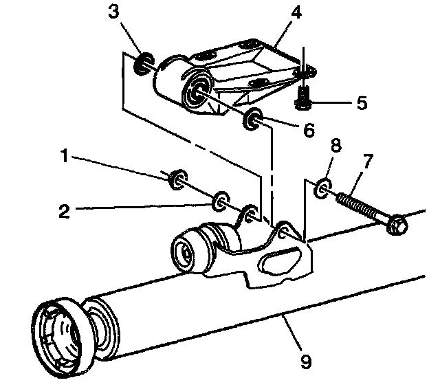 5. Loosen, but do not remove, the torque tube-to-bracket through bolt (7) and nut (1).