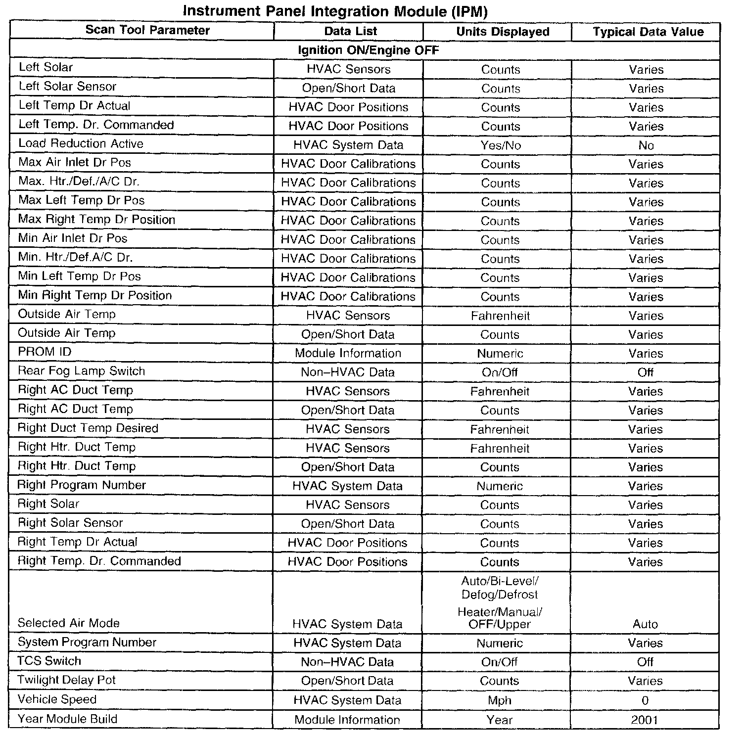 Scan Tool Data List - Instrument Panel Integration Module (IPM)