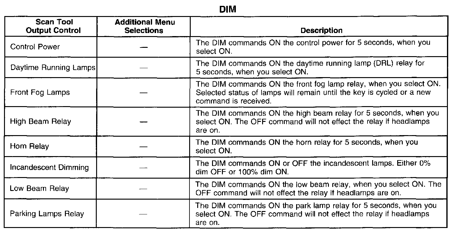 Scan Tool Output Controls - Dash Integration Module (DIM)