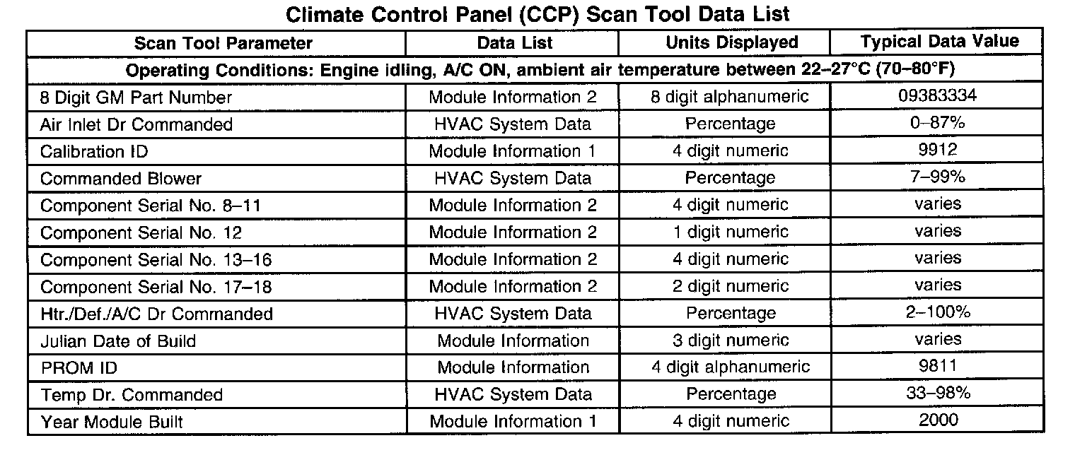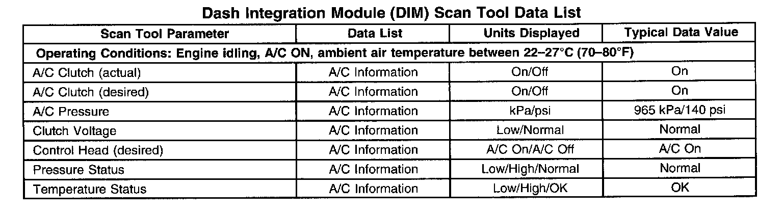 The scan tool data values were taken from a known good vehicle under the following conditions: