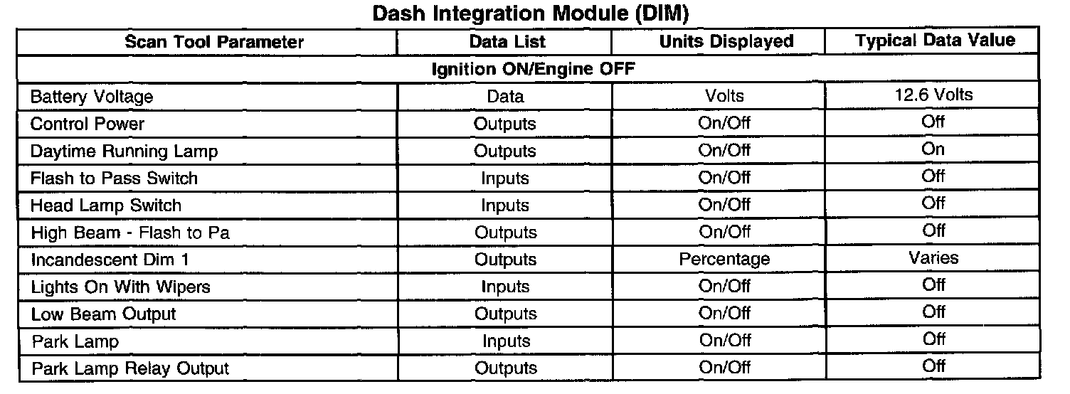 Scan Tool Data List - Dash Integration Module (DIM)