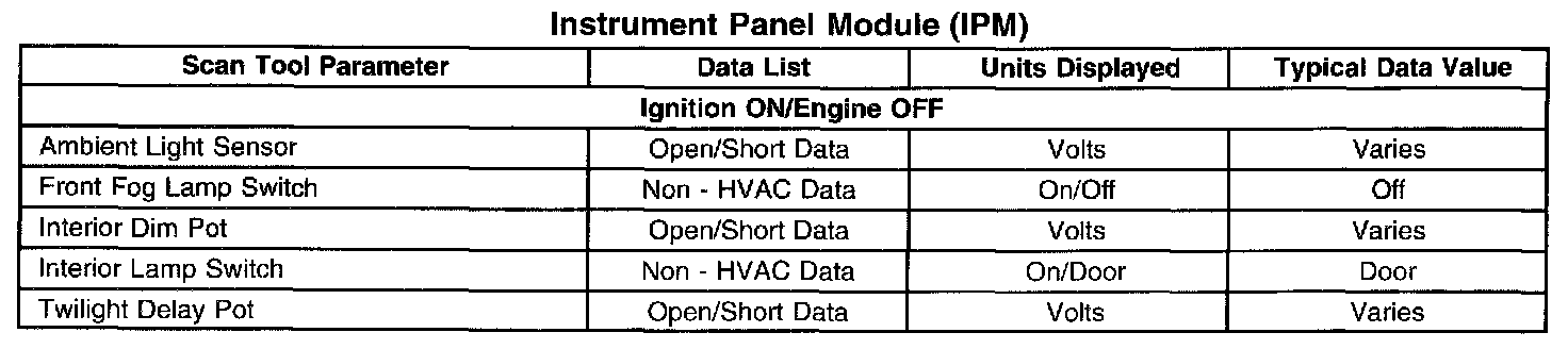 Scan Tool Data List - Instrument Panel Module (IPM)